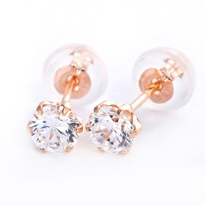 高品質キュービックジルコニア ピアス K18 ピンクゴールド 0.5ctサイズ シリコン製ダブルロックキャッチ仕様 一粒留