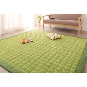ラグマット 185×240cm ボリュームタイプ グリーン 365日きもちいい!ふっくらキルト仕立ての洗えるコットンタオルラグ【防ダニ・抗菌防臭わた入】