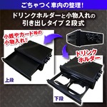 | 【商品名】 ドリンクホルダー ドリンクホルダーと小物入れが付いてとても便利! カード類や小銭、ライター等の小物を収納!ごちゃつく車内の整理ようとして! 上段が小物入れのフリーボックス。下段が飲み物を置けるドリンクホルダー ドリンクホルダーと小物入れの2段タイプ1DINドリンクホルダー&フリーボックスです。 引き出しタイプなので使わない時は、車内をすっきりみせてくれます。 |