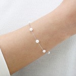 | アコヤ真珠を等間隔に留めたステーションブレスレット、長さ調整が細やかに出来るアジャスターチェーン付きなので取り外しもしやすくお使いいただけます。地金は18金かプラチナからお選びください。 |