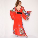 HOME>ファッション> 超ゴージャス ビジュー シフォン ロング 着物 ドレス レッド セクシー キャバドレス 花魁 おいらん