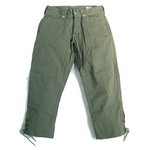 1952年製造ラベルがついた、ベルギー軍のニッカボッカをベースにモディファイしております。 50年代〜60年代にかけてベルギー軍のニッカボッカには大幅な仕様変更はないものの、製造年、納品メーカーによりディティールや色など様々なスタイルが存在します。 特徴のある裾の編み上げ部、50年代独特の生地感、臀部の補強布などディテールはそのままに、アルミボタンも忠実に再現いたしました。 強めのストーンウォッシュ加工が施され、程良く生地が薄目になり、これからの夏の季節に最適なパンツです。 |