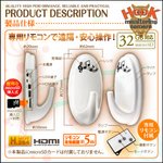 | 【製品機能】 ・動画撮影(1440×1080pxl,1280×720pxl,320×240pxl) ・静止画撮影(4032×3024pxl) ・ボイスレコーダー ・動体検知機能 ・外部電源機能 ・繰り返し録画機能 【製品機能】 ・動画撮影(1440×1080px・1280×720px・320×240px) ・静止画撮影(4032×3024px) ・ボイスレコーダー ・動体検知機能 ・外部電源機能 ・繰り返し録画機能 ・HDMI外部出力 ・リモコン操作 【カラー】ホワイト 【動画保存サイズ】3タイプ選択式 1440×1080px・1280×720px・320×240px MOVフォーマット 【静止画保存サイズ】4032×3024px JPGフォーマット 【フレームレート】最大〜30FPS(1440×1080pxl選択時15FPS) 【圧縮記録方式】H.264 【視 野 角】72° 【内蔵マイク】新高性能マイク 【メモリー】microSDカード(製品最大32GB対応) ※本製品にmicroSDカードは付属しておりません。 MicroSDカードはサンディスク社製のCLASS4以上をご利用ください。 【インターフェイス】USB 1.1/2.0 【最大稼働時間】動画:〜約100分(1280×720pxl録画時)/録音:〜約3時間 ※初期フル充電時のバッテリー性能の目安です。 ※お客様のご使用環境・ご使用場所により動作時間は変動します。 ※バッテリー稼働時間は理論値であり稼働時間を保証するものではありません。 【本体サイズ】幅約6.2cm×高さ約12.5cm×奥行約5cm(厚み約2cm) 【重 量】約60g 【最低照度】1.0lux 【動作温度】0℃〜50℃ 【動作湿度】10〜80%以下(結露なきこと) 【防 水】非防水 【対応OS】 Windows 10/8.1/8/7/VISTA/XP(動作検証済) 【バッテリ】リチウムイオン蓄電池 【充電時間】約2時間(ACアダプタ使用時) 【生 産 国】中国 【保証期間】製品購入日から1ヵ月間 【充電方法】USB(バスパワー)充電/ACアダプター 【セット内容】 1.製品本体 2.リモコン 3.USBデータ接続ケーブル 4.HDMIケーブル 5.AC電源アダプター 6.壁取付用アタッチメント 7.接着テープ 8.日本語取扱説明書 9.製品保証書 【製品WEBページ】 ・弊社取扱製品のよくある質問、ドライバー等のダウンロードページがあります。 【注意事項】 ・本製品は小型カメラです。フックの形状はデザインのため、重いものを掛けると落下する恐れがあります。 ・リモコンの操作距離は、最大約5m以内です。 ・壁面の材質によってはアタッチメントの接着テープが添付できない場合があります。 また、はがした場合に壁紙が破れたり跡が残る場合がありますのでご注意ください。 ・製品ケースや本体デザインが変更される事があります。 ・輸入品につき、製品箱等にキズ/汚れがある場合がございます。 ・バッテリー稼働時間はあくまでも目安であり稼働時間を保証するものではありません。 ・プライバシーの侵害/迷惑防止条例等に抵触する悪質な行為に使用しないで下さい。 ・本製品は専用ケーブルを使用している為、他のケーブルでは接続はできません。 ※お届けの際、梱包箱・伝票に商品名は記載されません。 |